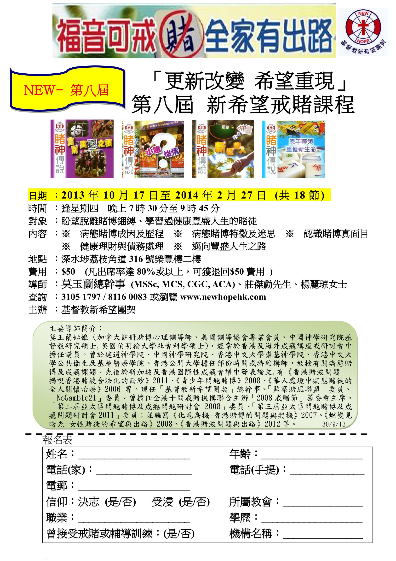 2013年「 更新改變 希望重現」新希望戒賭課程第八屆