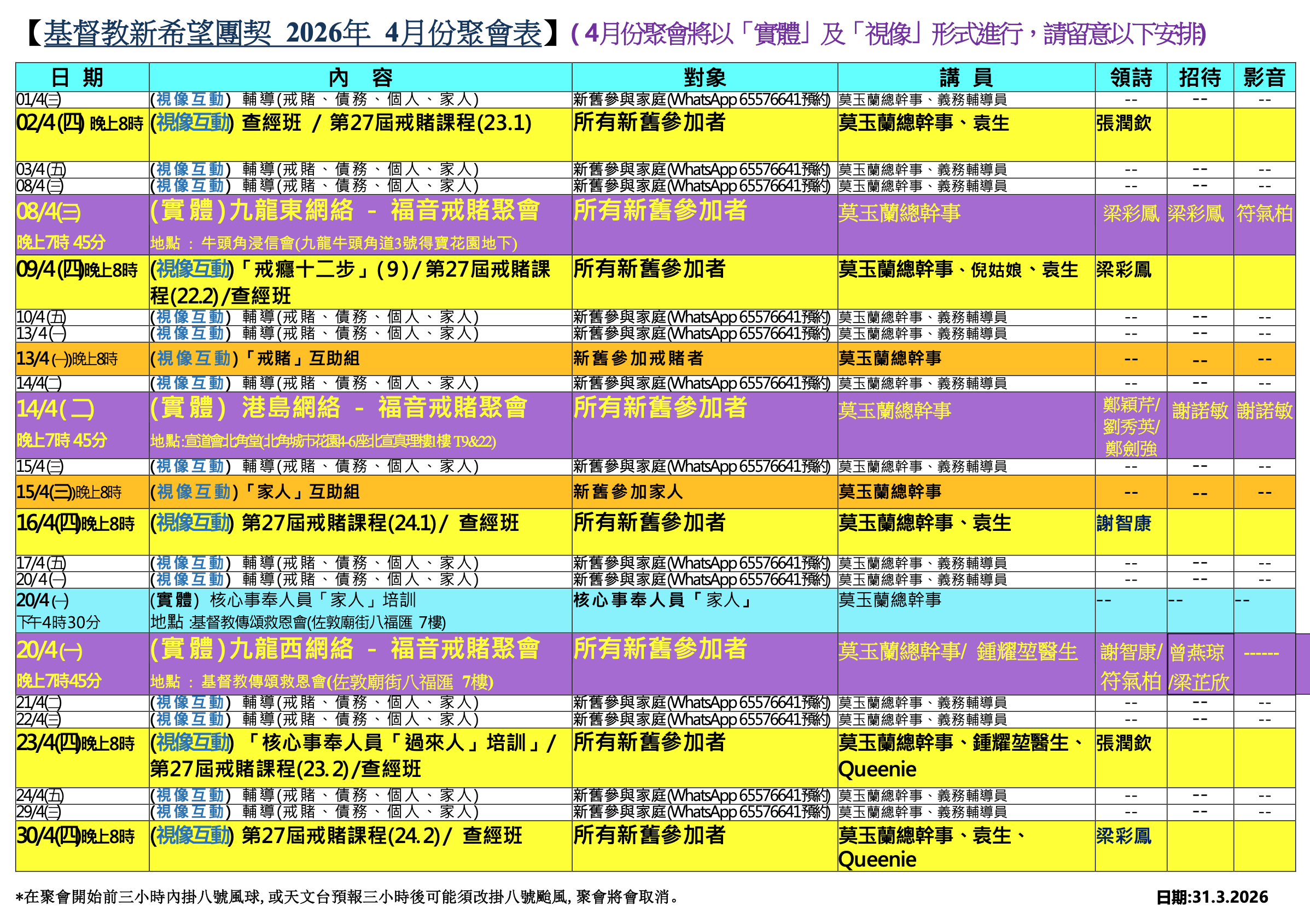 2026年最新聚會表